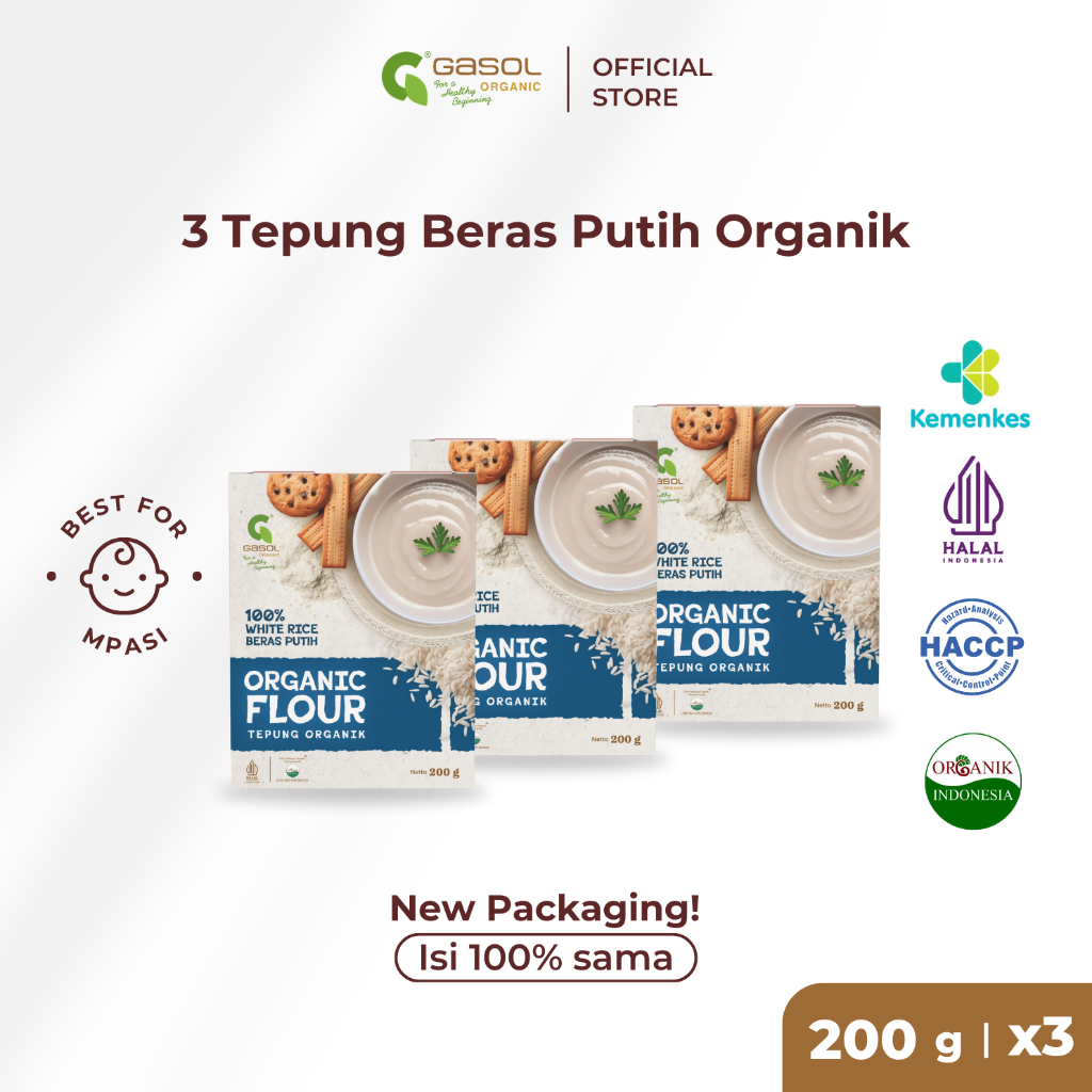 GASOL Tepung Beras Putih Organik Makanan Bayi MPASI 200gr x 3