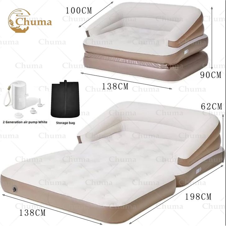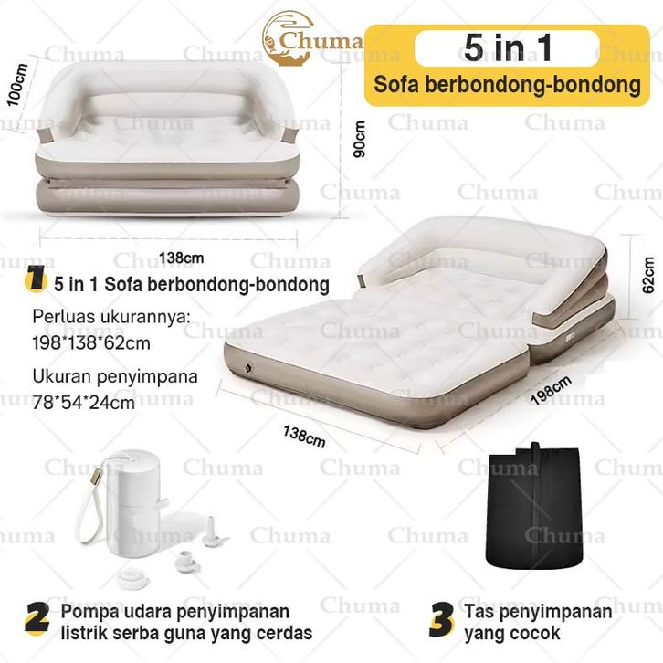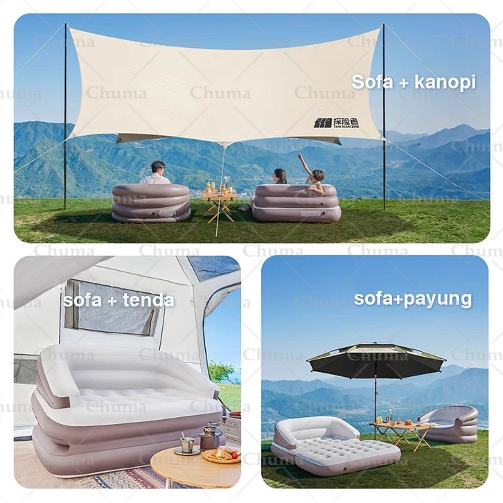Tahan Air Kain Berkelompok⭐Sofa Angin Pompa Otomatis Tempat Tidur Sofa Lipat Tiup Kasur Lounge Kursi malas Sofa Kasur B