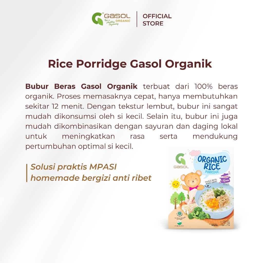 GASOL Bubur Beras Organik Makanan Bayi MPASI 300gr