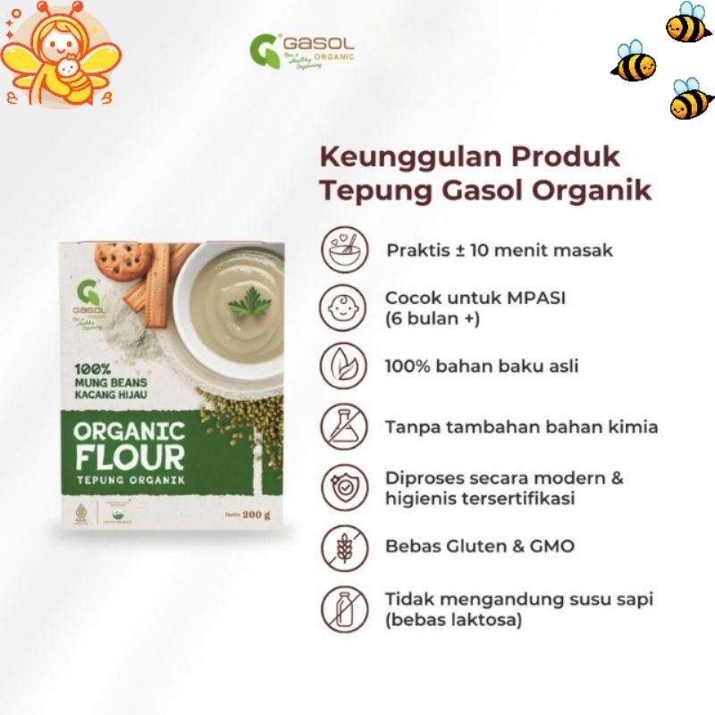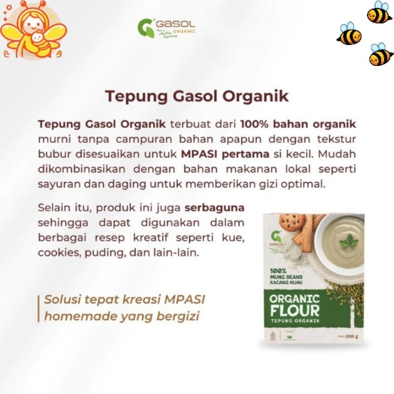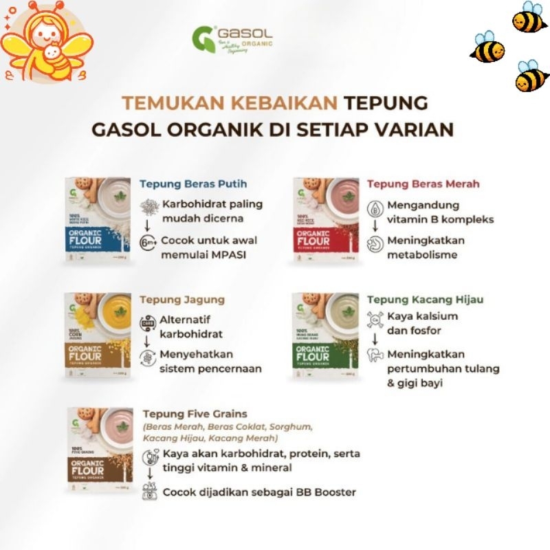 GASOL Tepung Organik Makanan Bayi Mpasi 200gr / Tepung Kacang Hijau / Beras Putih / Beras Merah / Jag / Five Grains