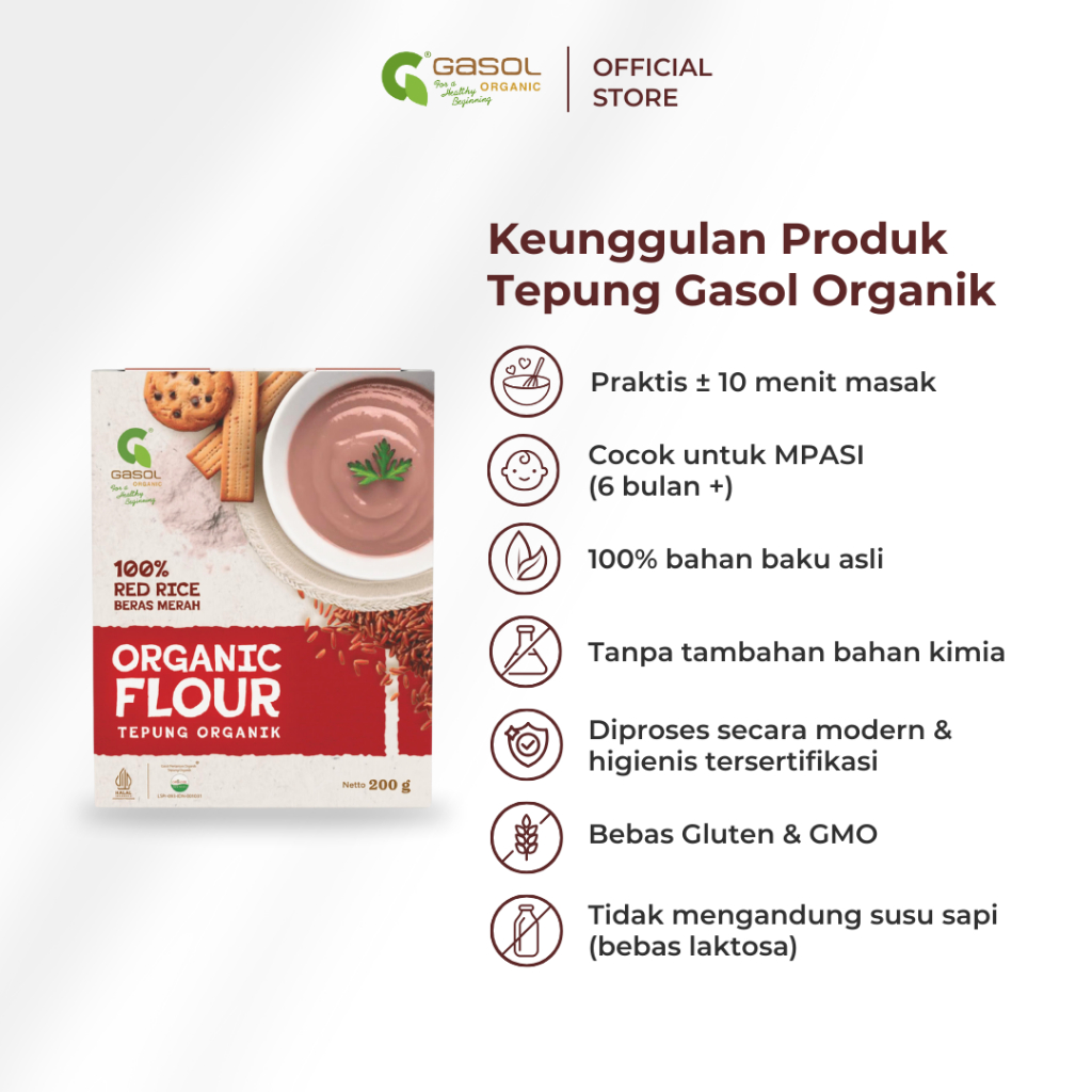 GASOL Tepung Beras Merah Organik Makanan Bayi MPASI 200gr
