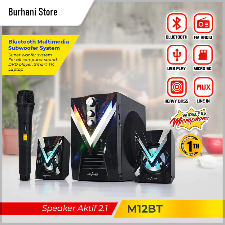 Speaker Bluetooth Advance M12BT Karaoke Wireless Subwoofer Super Bass Speaker Aktif Free Microphone Original