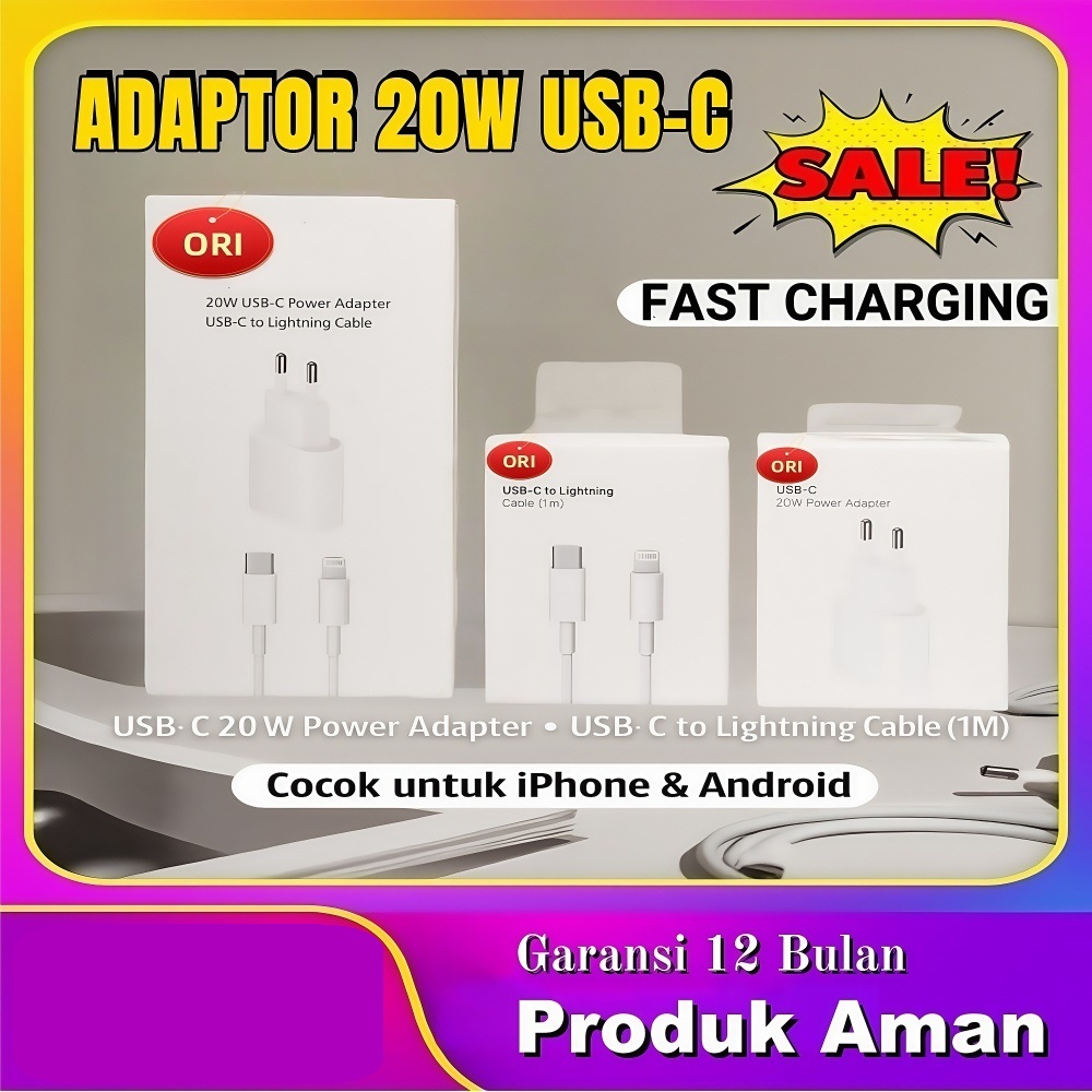 [Star] Adaptor Charger 20W + Kabel Fast Charging Lightning Cas iPhone | Support iPhone Series | Paket Lengkap