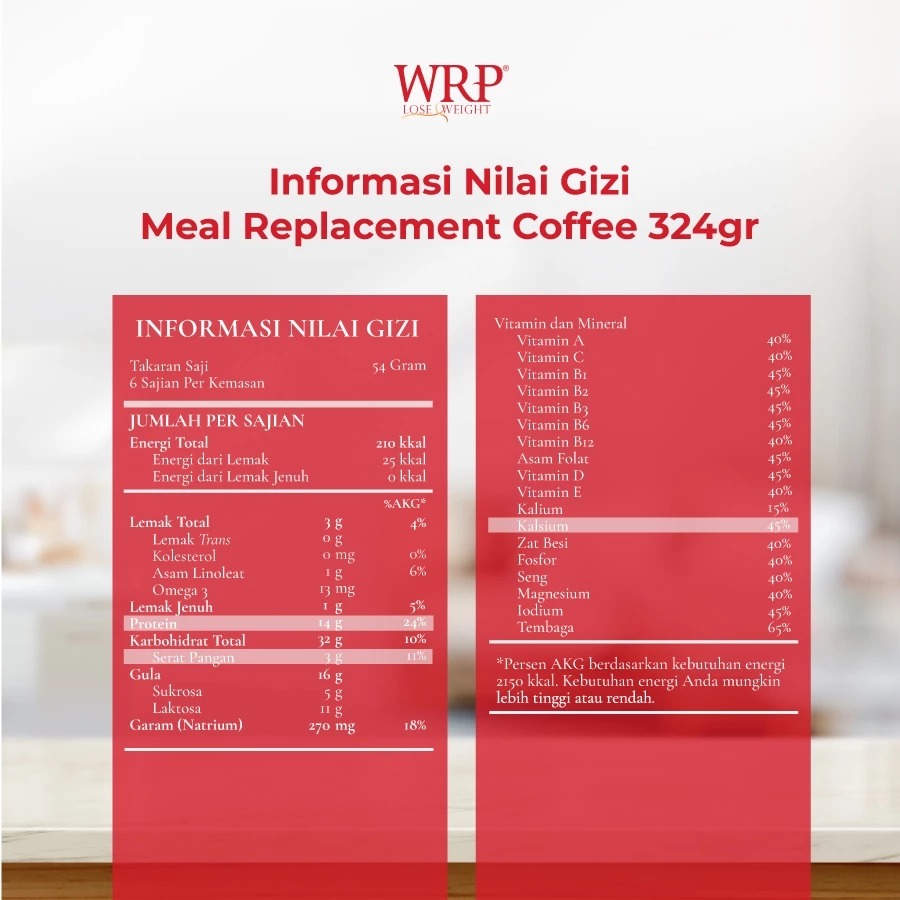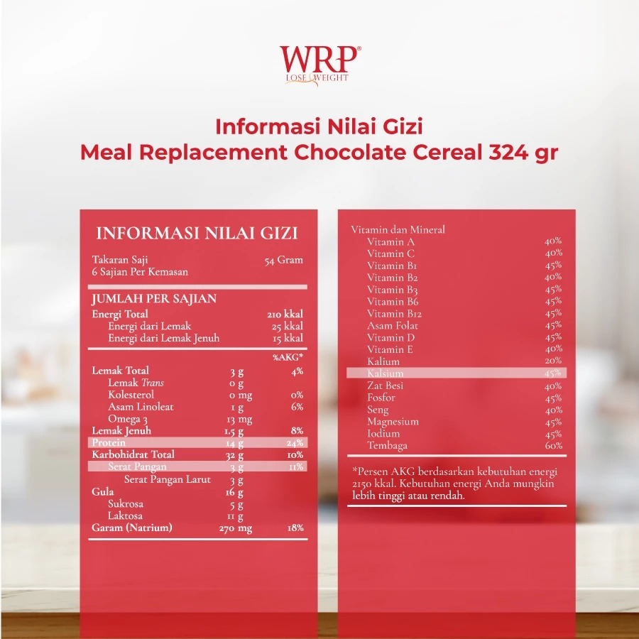 Susu WRP Meal Replacement Chocolate/Coffee/Strawberry/Mocha Green Tea/Chocolate Cereal 324g Susu Diet Pengganti Makan