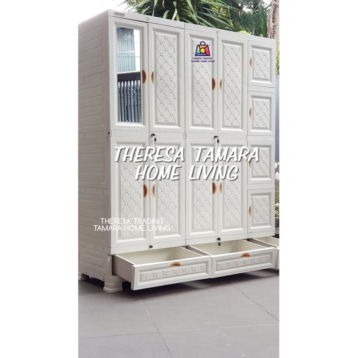LEMARI PLASTIK NAPOLLY 5 PINTU 5412 GANTUNGAN BAJU GAMIS HANGER + 3 LACI BAWAH + KUNCI LEMARI