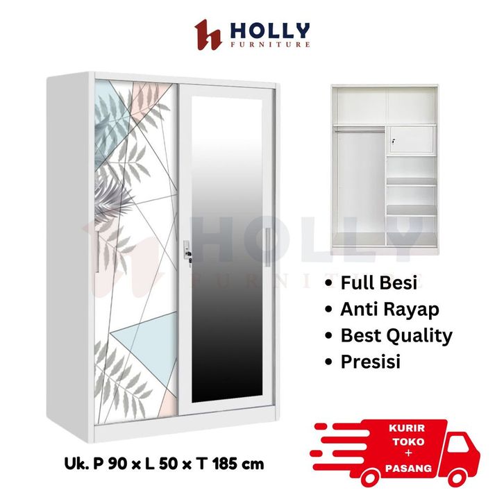 HOLLY Furniture Lemari Baju / Lemari Pakaian Besi Sliding 2 Pintu