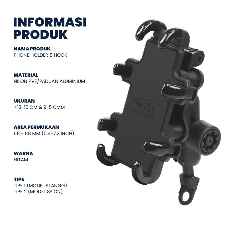 Holder hp motor besi✔Holder Handphone Motor Premium Design (Bahan Besi) 8 Hook/termurah