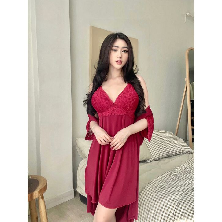 Chelsea Sleepwear Dress Kimono + Panties + Belt in Red Color