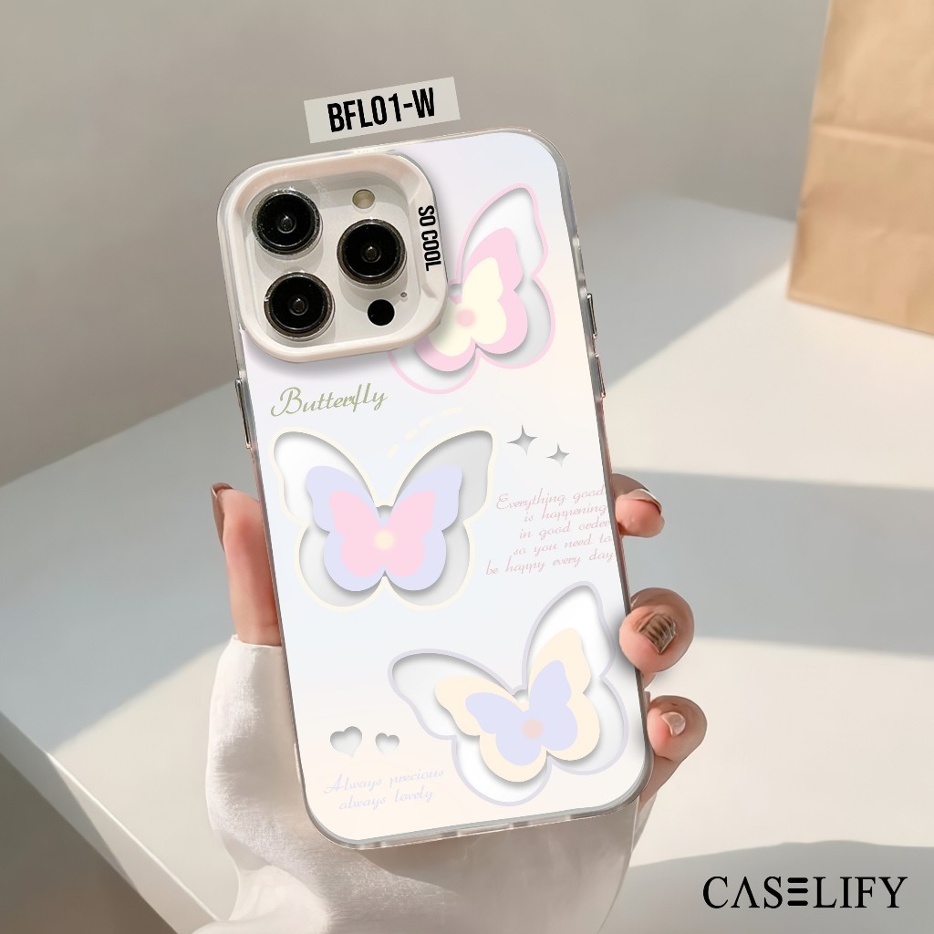 CASE IPHONE 16 X XR XS MAX 7 8 11 12 13 14 15 PRO MAX PLUS CASING SILIKON PONSEL HP SOFTCASE IMD BUTTERFLY FLOWERS