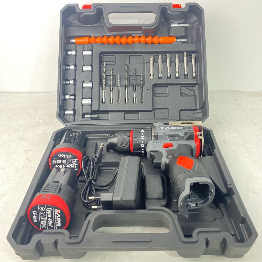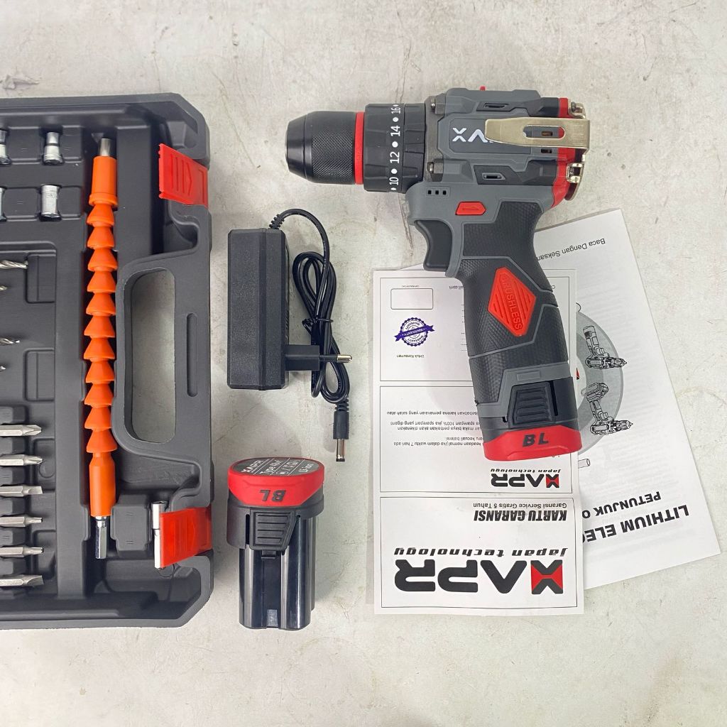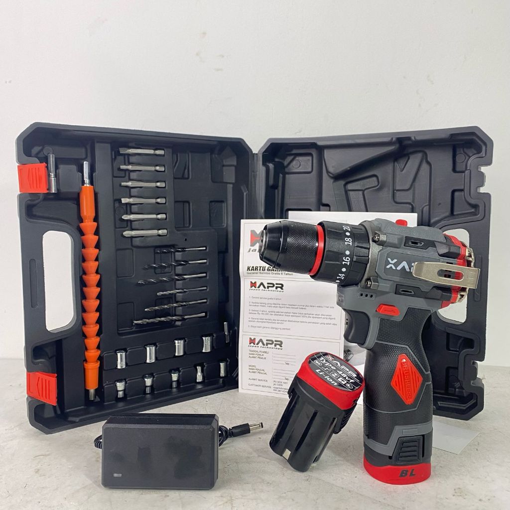 NEW BOR impact drill BRUSHLESS TYPE AP85 pro 10mm keyless auto lock 2baterai mesin bor besi kayu