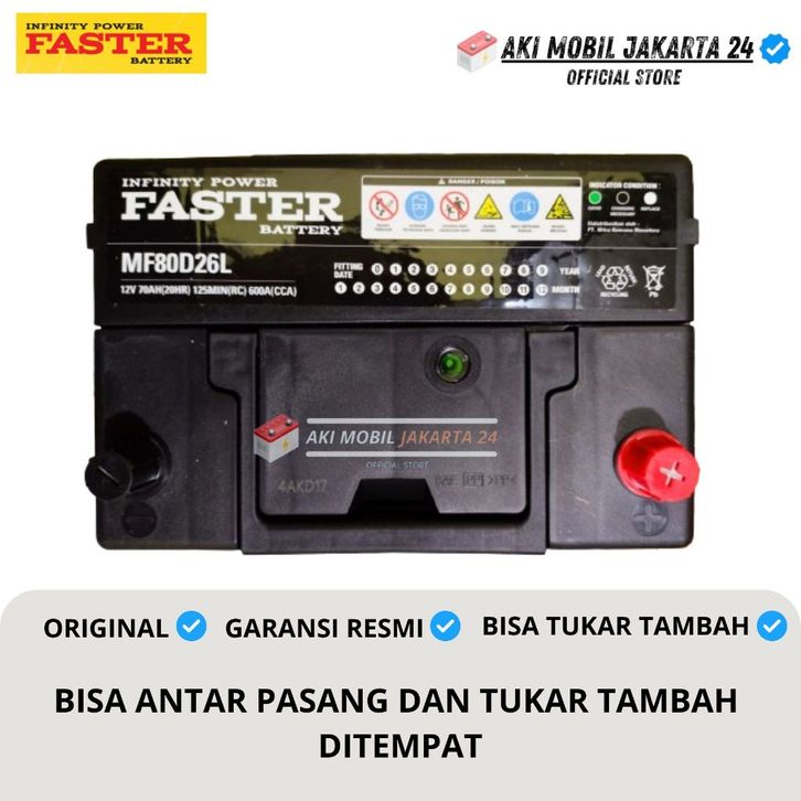 Aki Mobil FASTER MF 80D26L Aki Kering (Maintenance free) 12V / 70 Ah