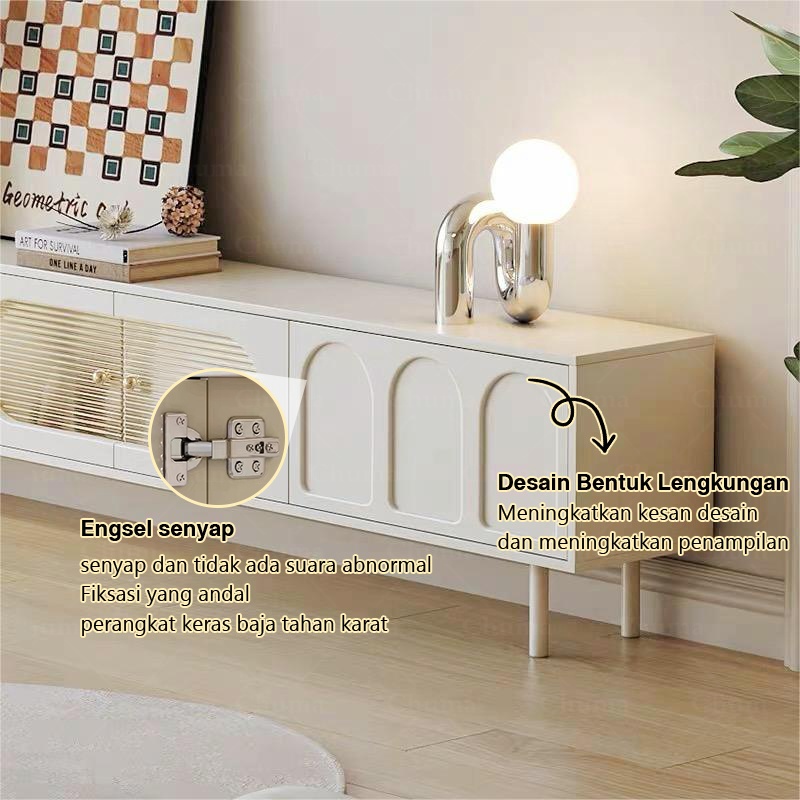 [Mall] Meja TV Minimalis Modern Rak TV Lemari TV Prancis Krem 160cm&180cm Meja TV Tekstur Minimalis Tahan air dan tahan