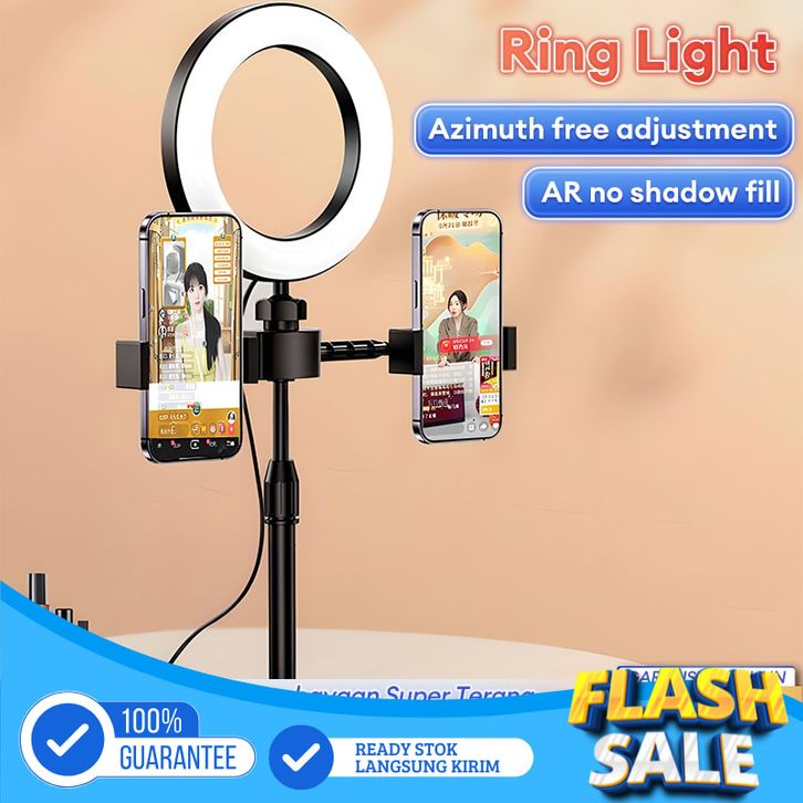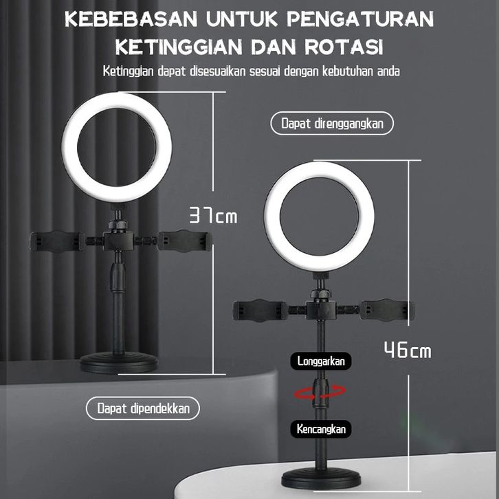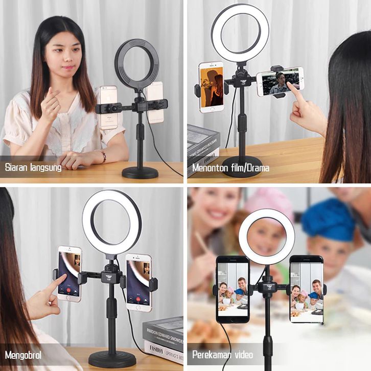 Ring Light Tri Mini Beauty Stand untuk Live Stream Video Selfie Make Up Vlog Lampu 2 Holder HP