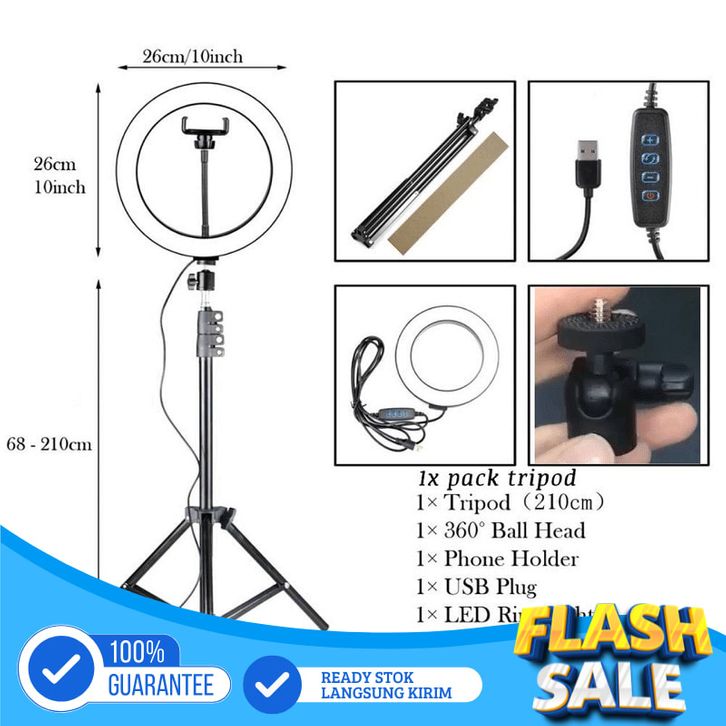 TRI Handphone 2 meter Ring Light Selfie LED 26 cm free holder handphone