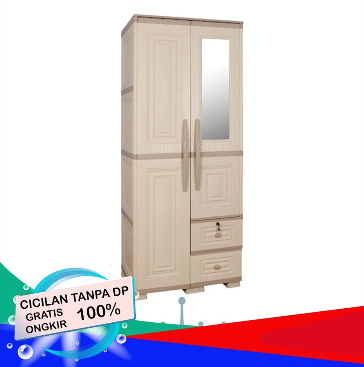 OTC 2P MODERN / SCOC 2P - LEMARI PLASTIK/ LEMARI PAKAIAN 2 PINTU CERMIN + LACI OLYMPLAST GANTUNG - HANGER - RAK / LEMARI