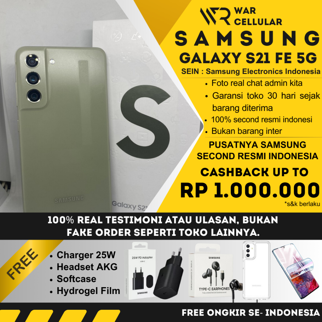 SAMSUNG S21 FE 5G SEIN 8/256GB 8/128GB SECOND RESMI INDONESIA