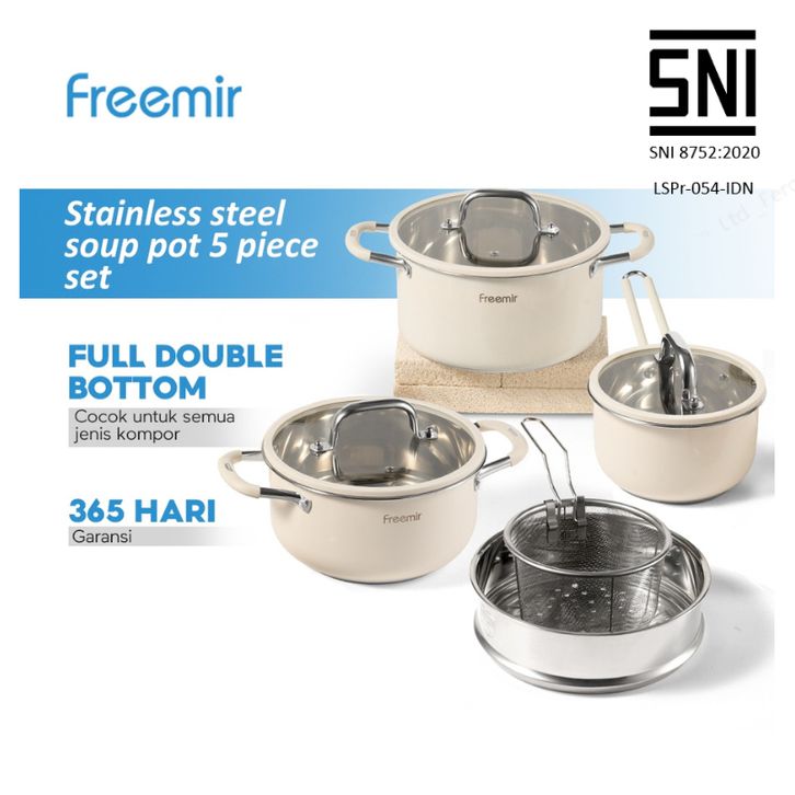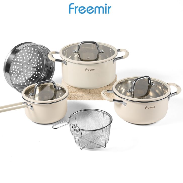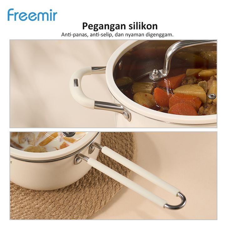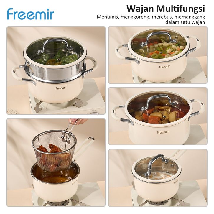 freemir 0-Coating Wajan Stainless Steel Panci Set 8 pcs Anti Lengket Granit Kombinasi Alat Masak Dapur Lengkap