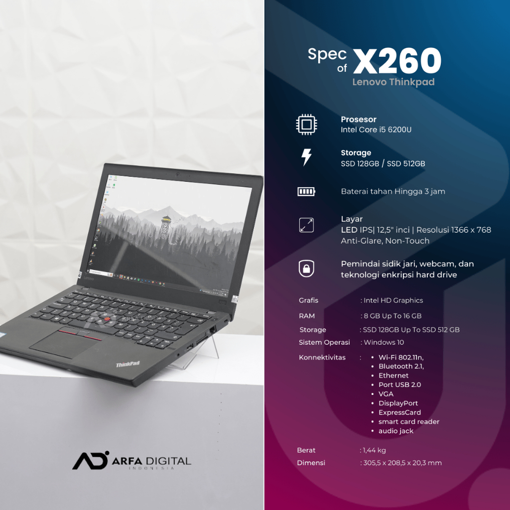 LENOVO THINKPAD X260 INTEL CORE I5 GEN 6 RAM 8GB SSD 256GB MULUS LIKE NEW BERGARANSI