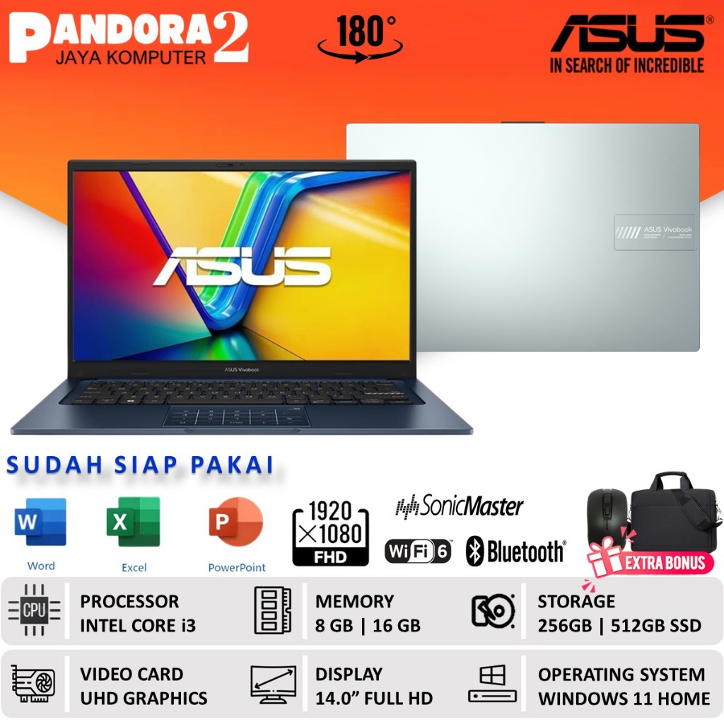 LAPTOP ASUS VIVOBOOK GO 14/15 INTEL CORE I3 N305 8GB 512GB FHD WIN11 BARU