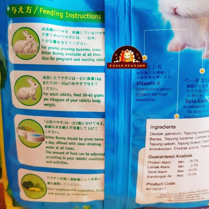 Makanan Pellet Kelinci Briter Bunny 1kg Carrot Broccoli Rabbit Food - CARROT