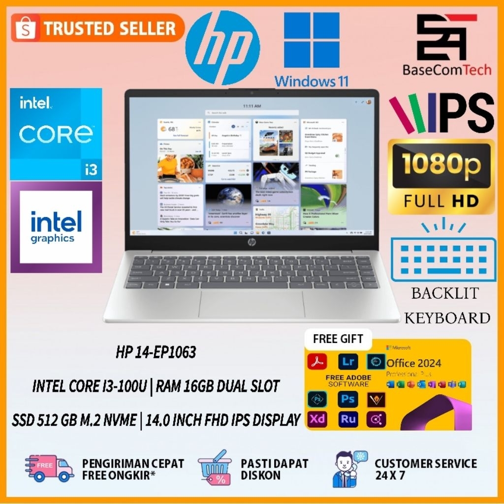 HP 14 EP1063 | INTEL CORE I3-100U | 16GB/ 512GB | 14.0 INCH FHD IPS | WINDOWS 11 + OFFICE
