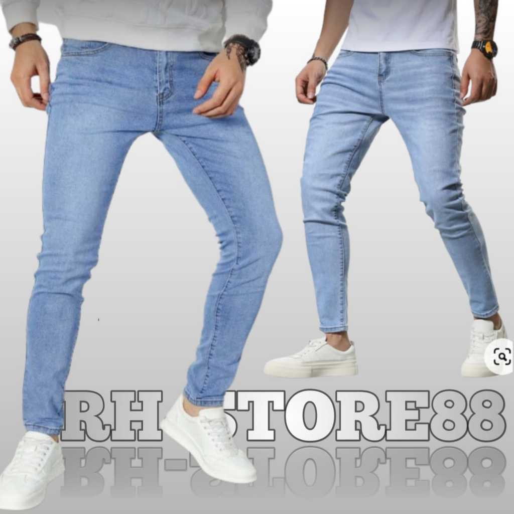 (Gratis Ongkir) Celana Jeans Pria Denim Celana Pensil Cowok Hitam Celana Jeans Panjang Pria Slim Fit/Celana Jeans Pria P