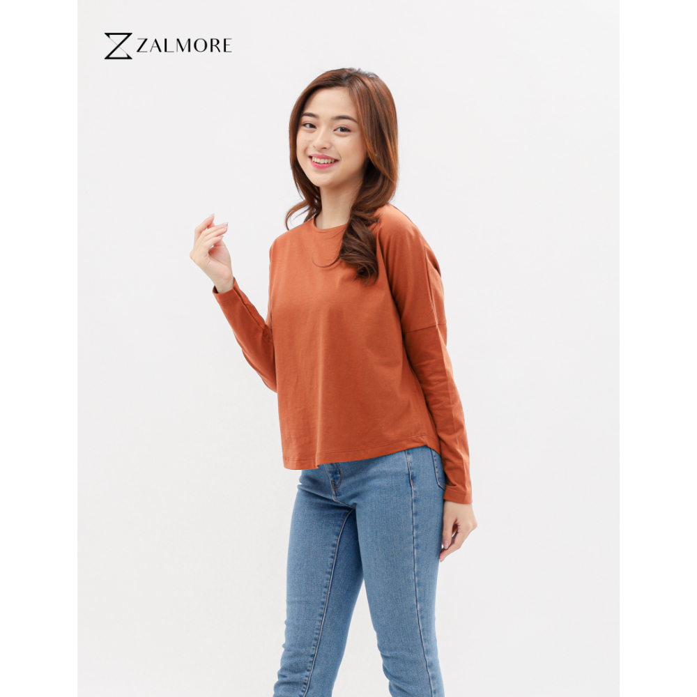 Longsleeve Loose Tee Premium Cotton-Kaos Lengan Panjang Wanita