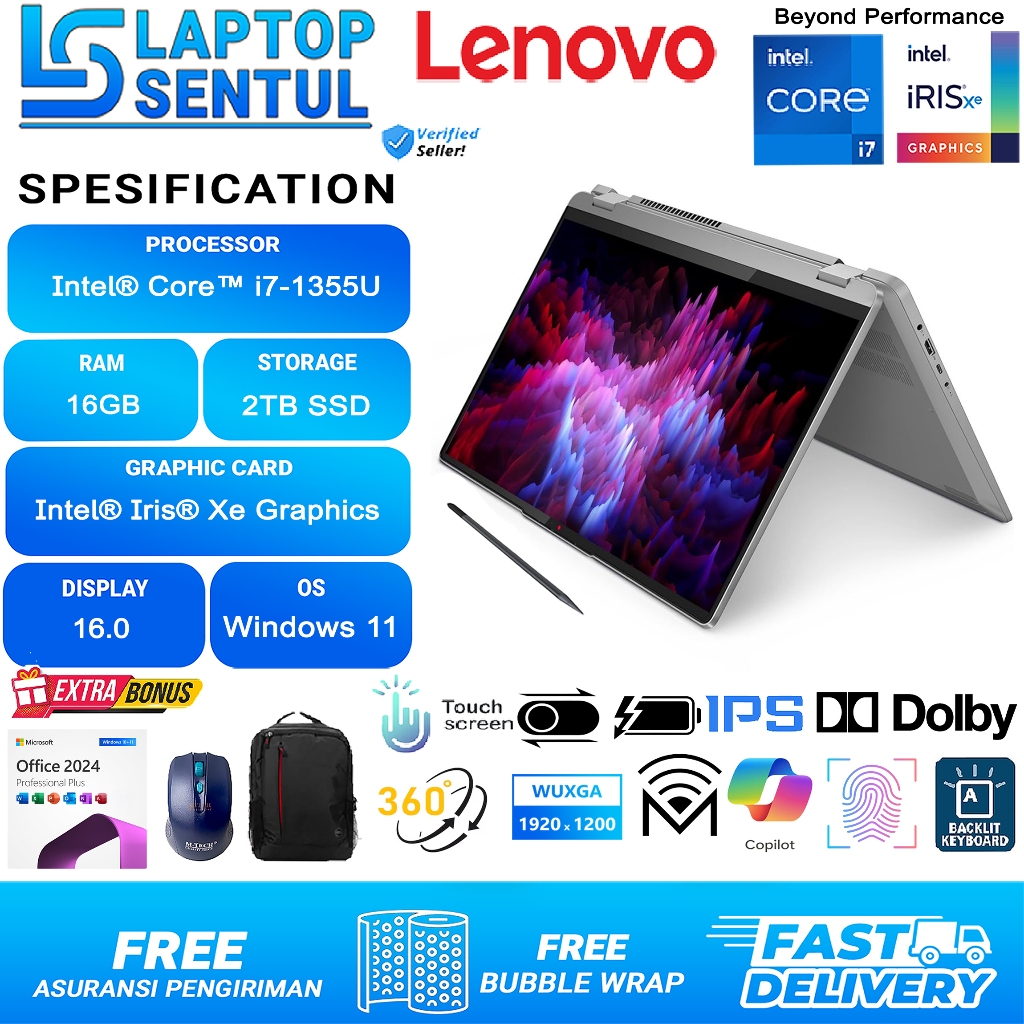 LAPTOP FLIP TOUCHSCREEN LENOVO IDEAPAD FLEX 5 16 INTEL CORE I7 1335U RAM 16GB 2TB SSD WUXGA IPS WINDOWSS 11 OFFICE 2024