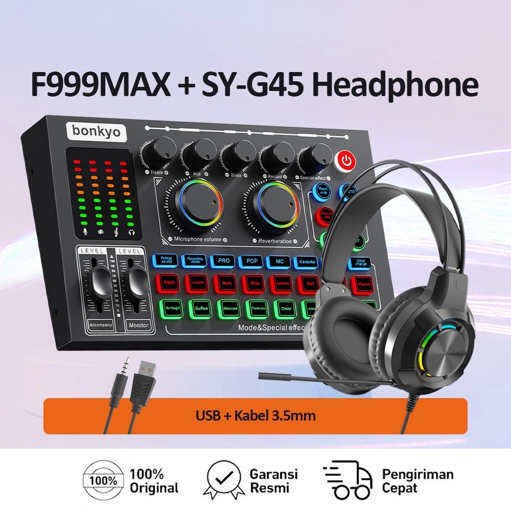Paket Sound Card F999 Max Amplifier Mic Speaker Bluetooth Mini Behringer Umc404hd Bonkyo Maono V8 Q7 Yamaha