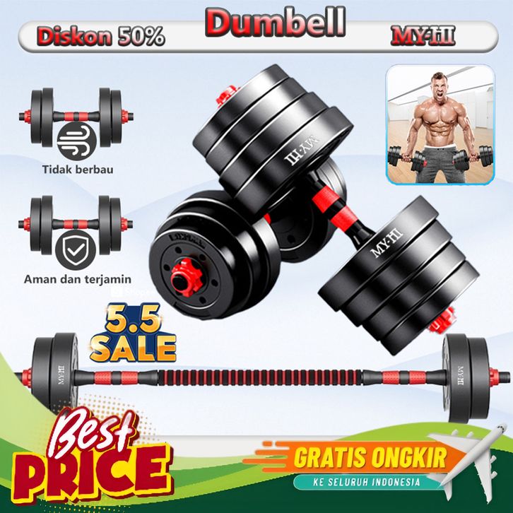 [Mall] [10KG/20KG/30KG/40KG] Dumbell Set Barbel Bisa Disambung Dengan Kombinasi Gratis