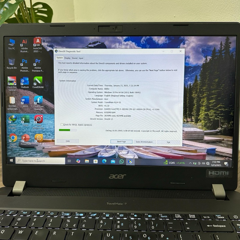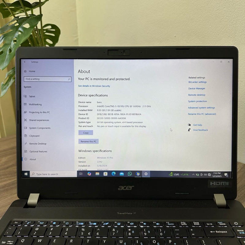 LAPTOP ACER TRAVELMATE P214-52 I5 RAM 8GB SSD 256GB