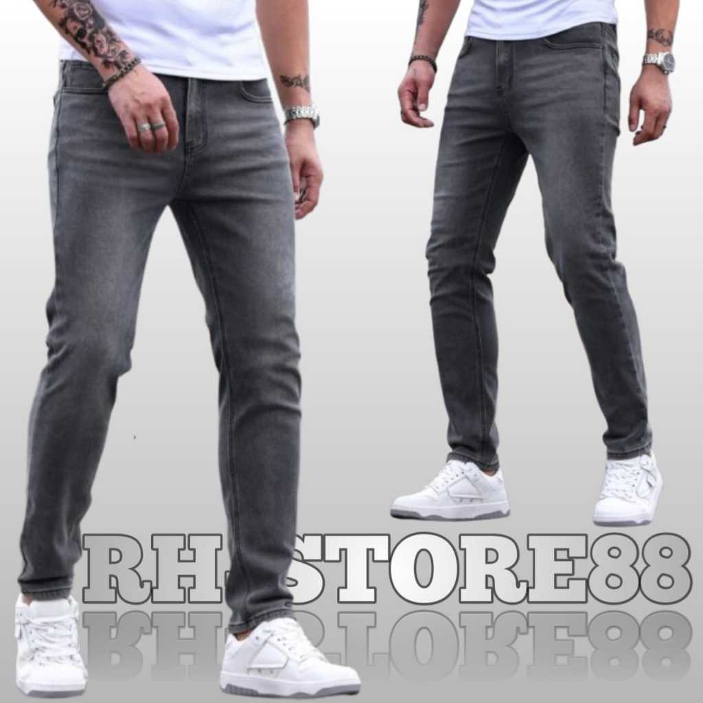 (Gratis Ongkir) Celana Jeans Pria Denim Celana Pensil Cowok Hitam Celana Jeans Panjang Pria Slim Fit/Celana Jeans Pria P