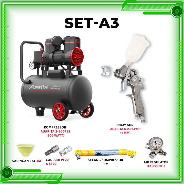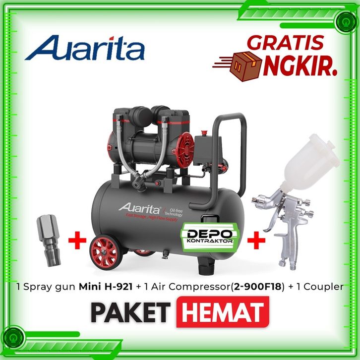 Grosir Kompressor Angin Auarita 2-900F18 Silent Oilless Compressor 1.2 Hp Listrik 900watt 18 Liter Dental Keren