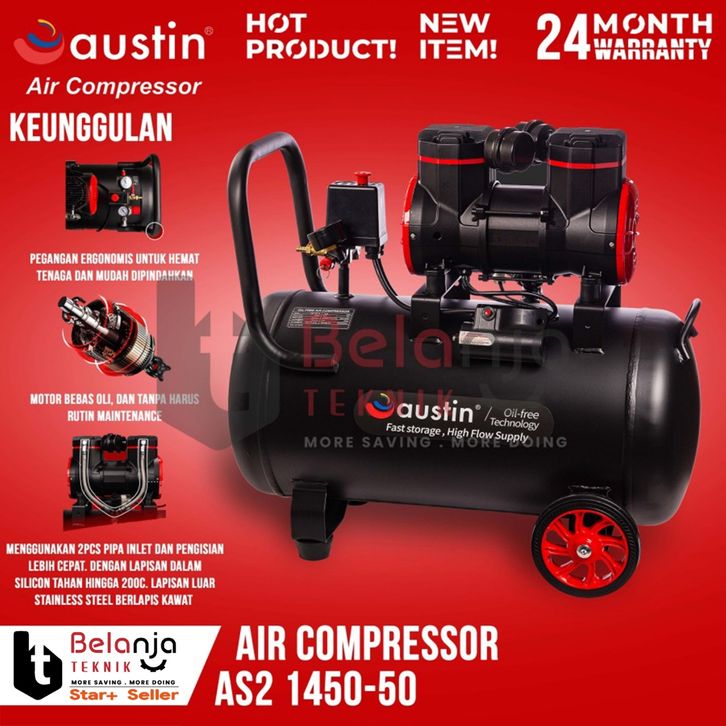 Grosir Austin Mesin Kompresor Udara AS2 1450-50 Air Compressor Oilless 50 L Elegan