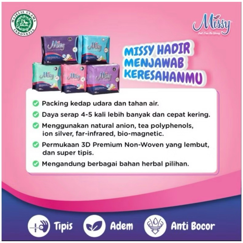 MISSY PADS GENTLE FREEZE /SKIN FRIENDLY PEMBALUT HERBAL/ PANTY LINER