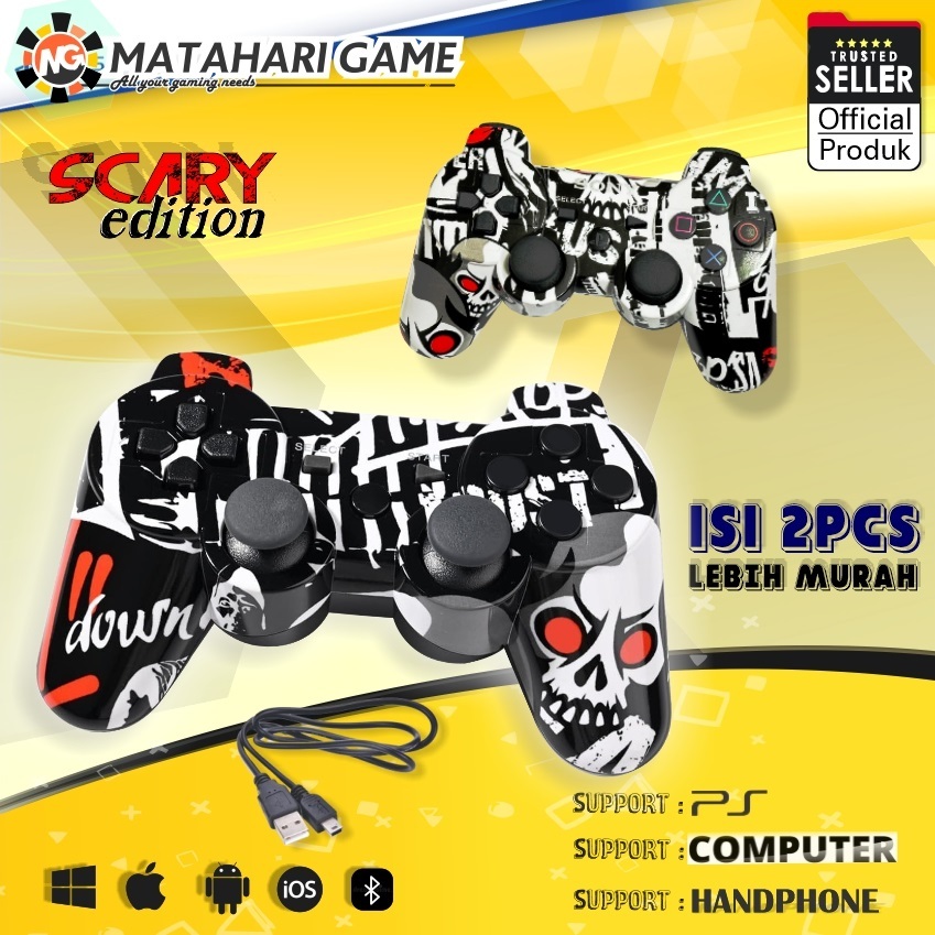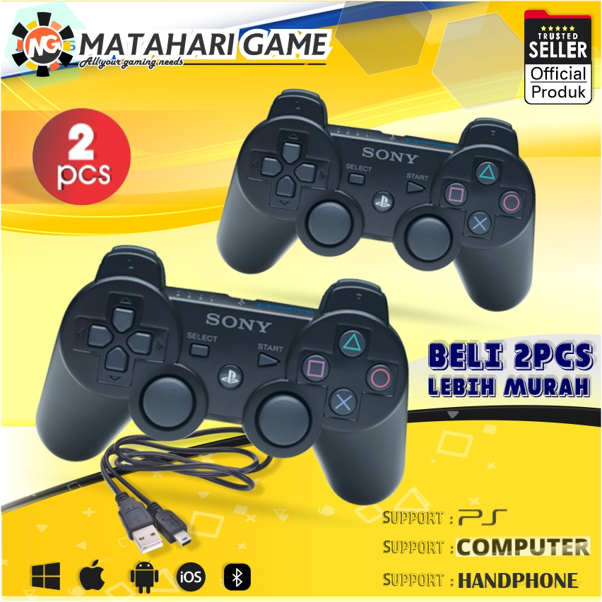 ( 2 Pcs Promo) Stik PS3 Original Pabrik Ori Mesin Stick PS3 WOLF Wireles Kabel OP Getar Playstation HP/PC Bukan PS2 PS4
