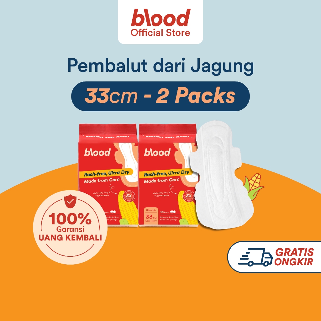BLOOD CORN PADS / PEMBALUT DARI JAGUNG | BEBAS GATAL & ULTRA THIN - 33CM | BUNDLE 2 PACKS