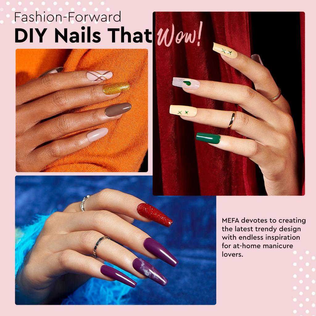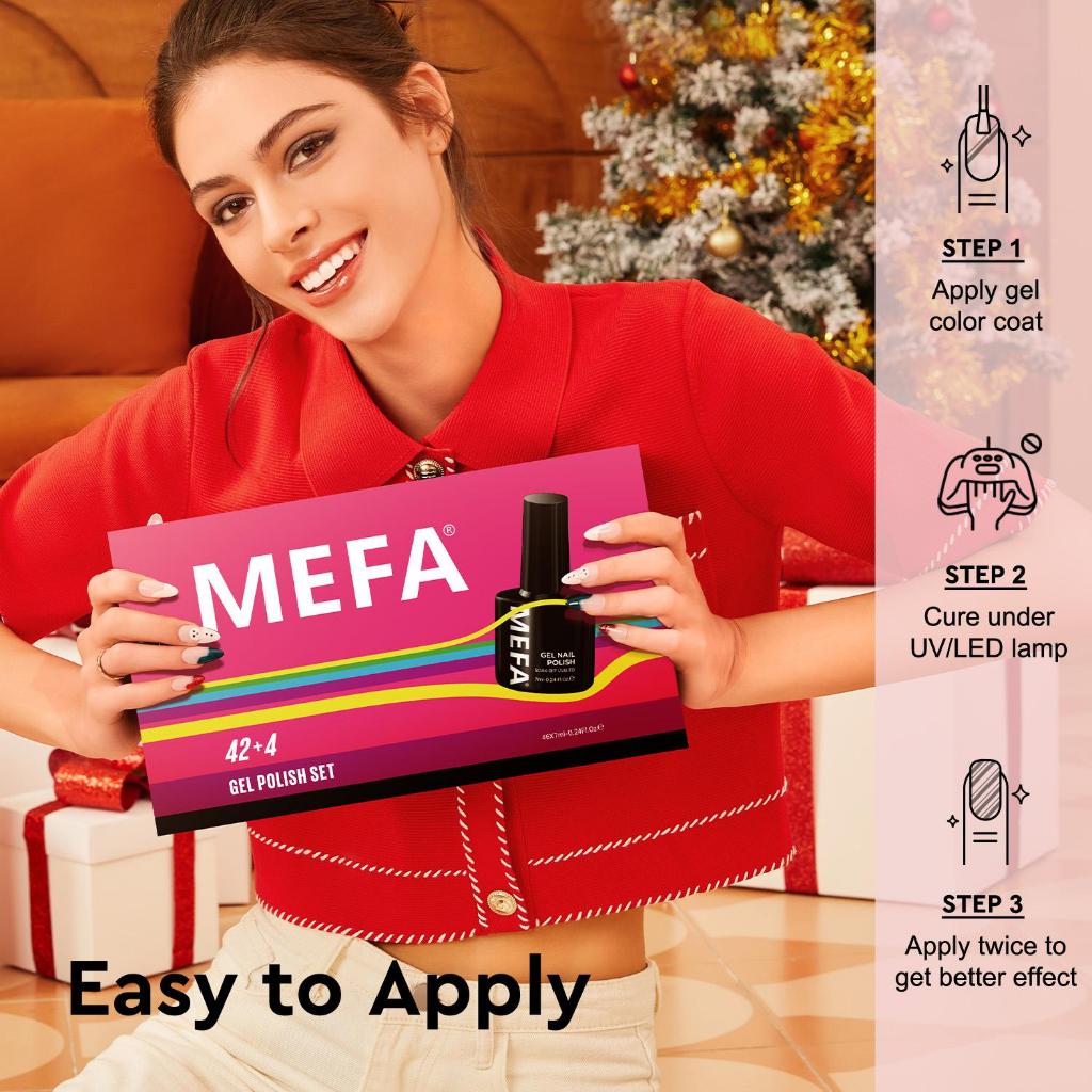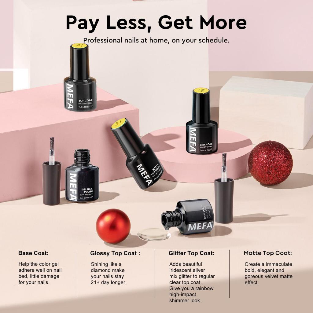 MEFA Gel Nail Polish Set 47 PCS dengan Nail Primer Base Coat & Glitter/Glossy/Matte Top Coat 42 + 5 Kit hitam Putih Mera