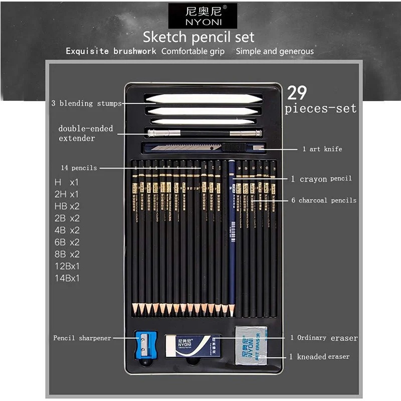 Drawing Pencil Set 29 pcs Lengkap Pensil Gambar Sketsa Lukis dalam Metal Tin Box