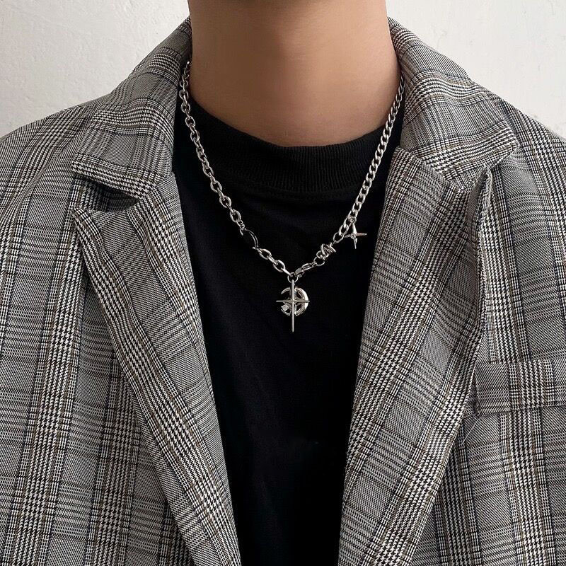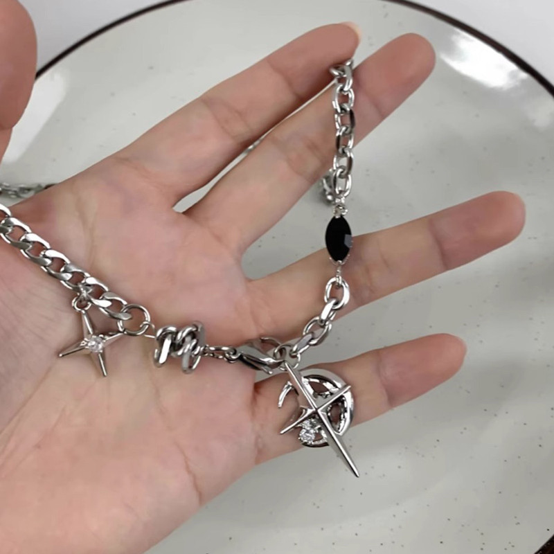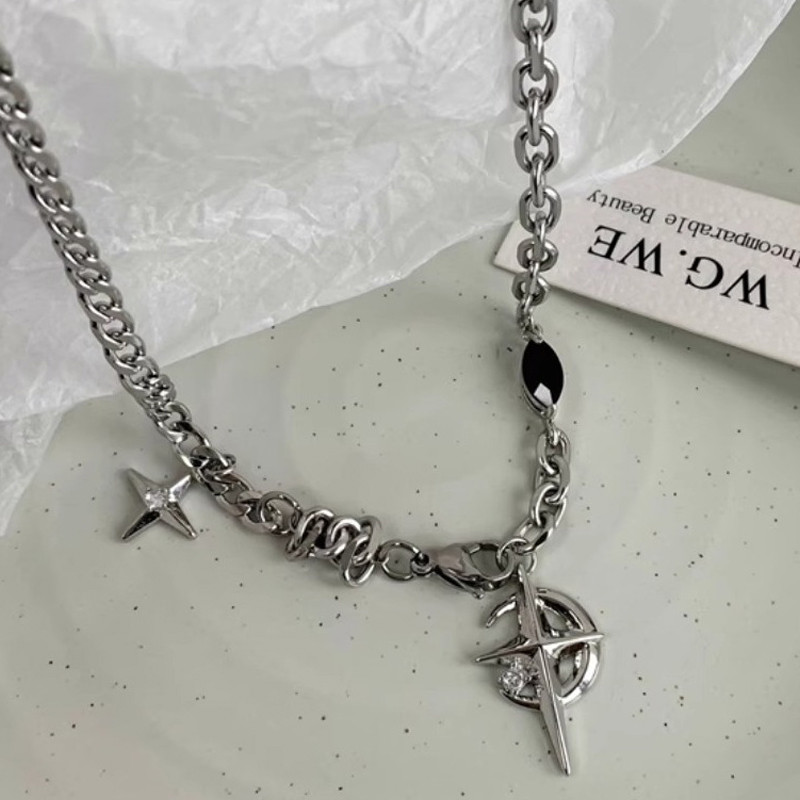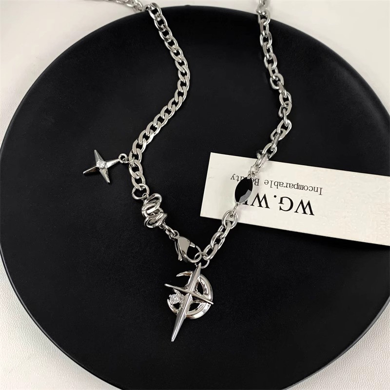 KALUNG BINTANG BATU PERMATA HITAM KALUNG GAYA HIP HOP RANTAI PUNK PRIA DAN WANITA FASHION KALUNG LIONTIN SY