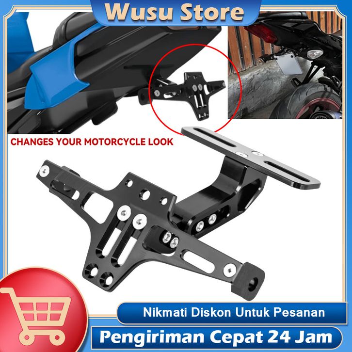 Dudukan Plat Motor Braket Dudukan Pelat Nomor Sepeda Motor Universal yang Dapat Disesuaikan + Lampu Led Yamaha Honda