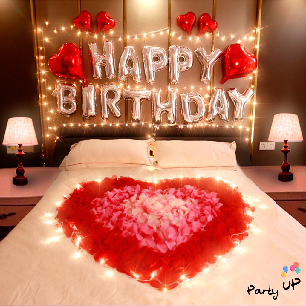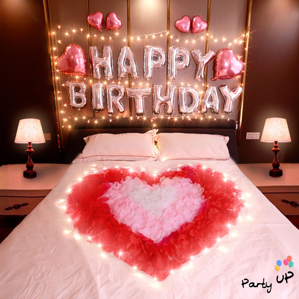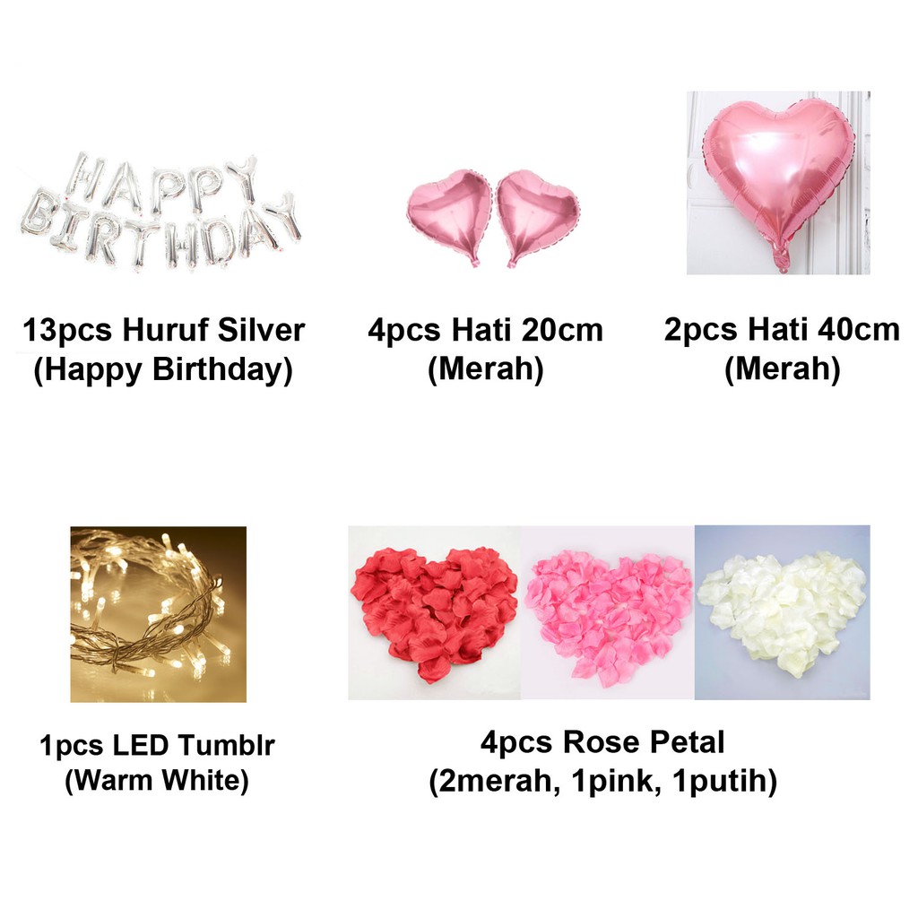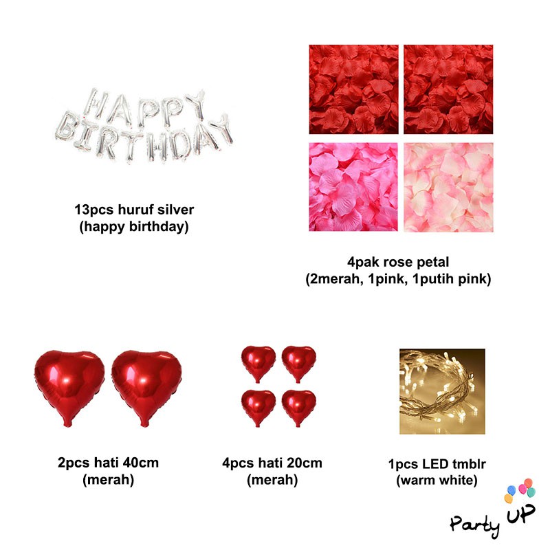 [Paket Romantis] Romantic Happy Birthday Silver Heart Pink/Merah