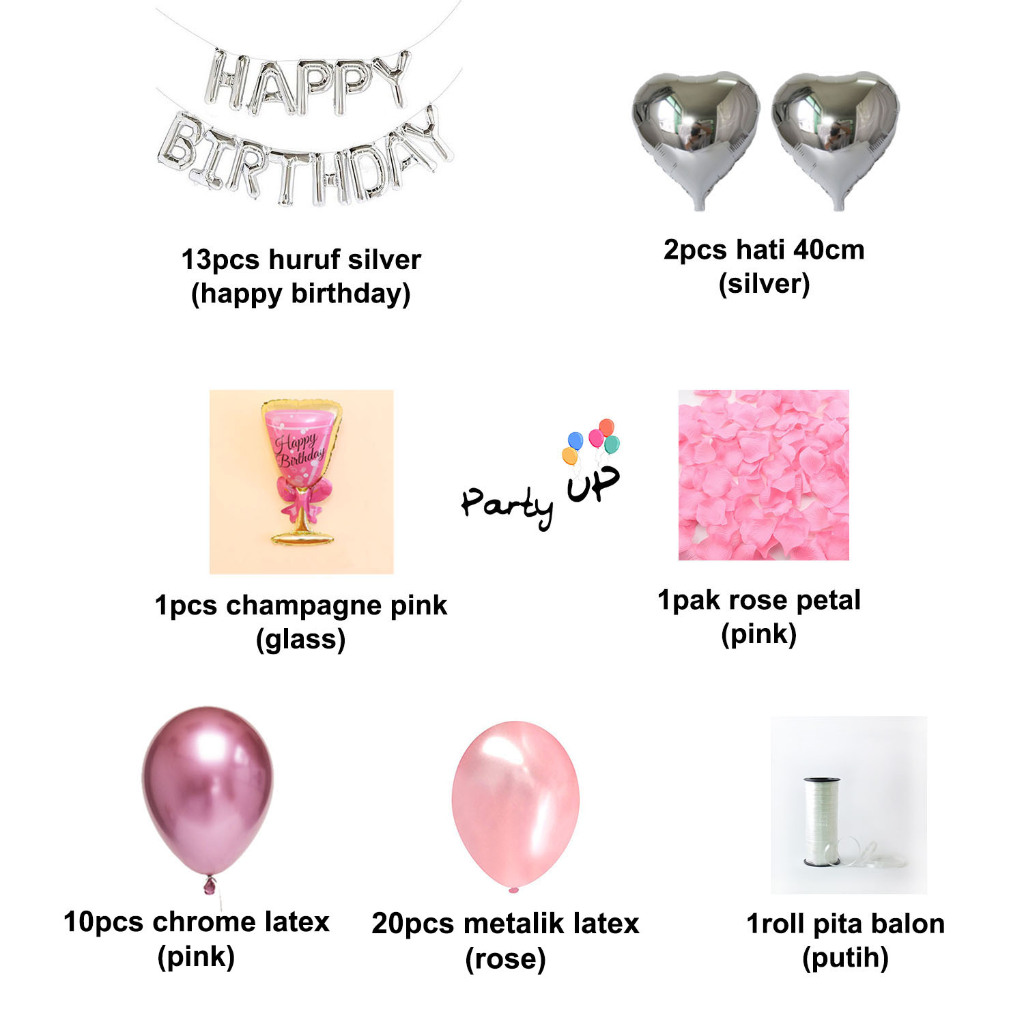 [Paket] Happy Birthday Chrome Pink & Metalik Rose Glass