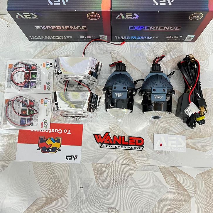 Fullset BI LED AES TURBO SE EXPERIENCE 2.5 INCH MOTOR MOBIL 1 SET SEPSANG KIRI KANAN