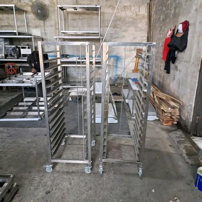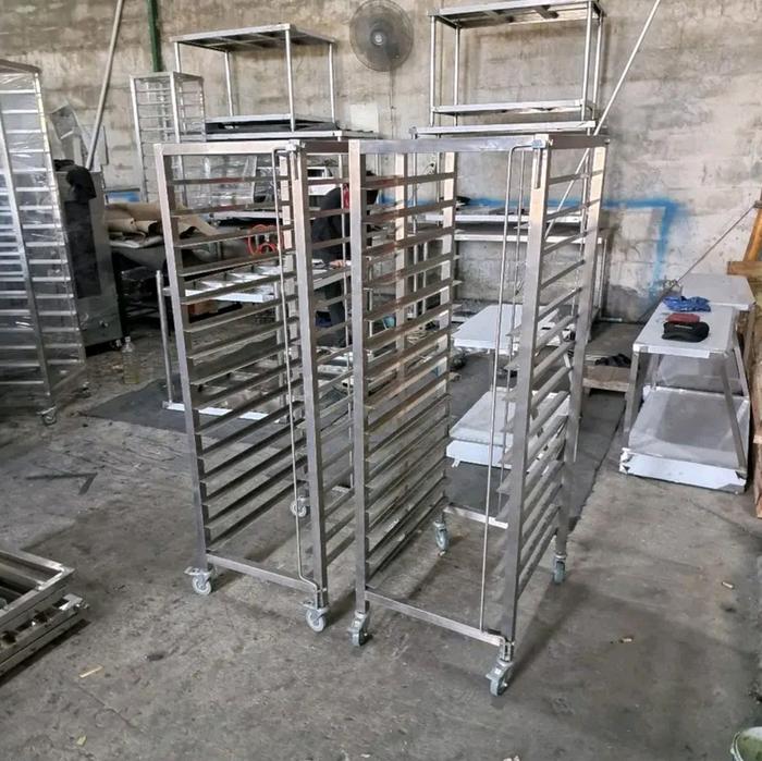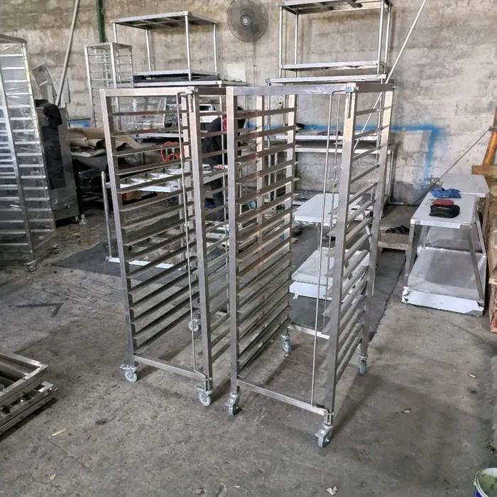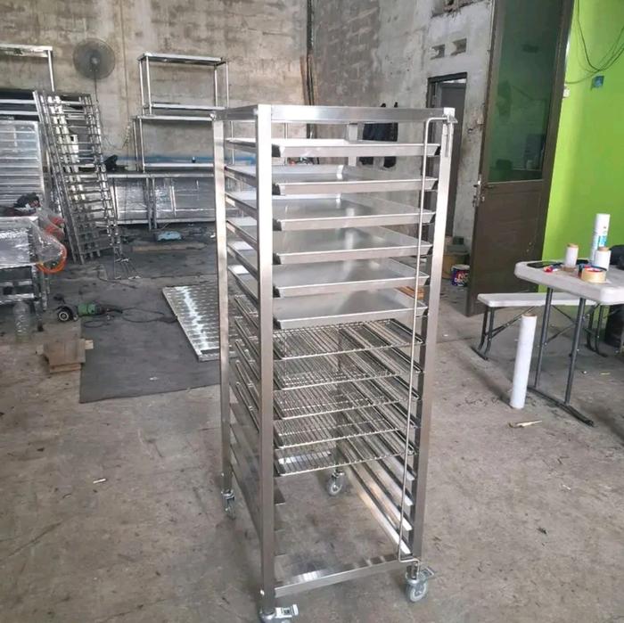 rak troly loyang 15 susun dan 10 susun terbuat dari bahan stainless 201