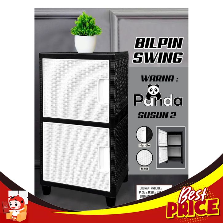 PANDA Lemari Baju Pakaian Plastik AKAKO 2 Pintu Laci Rotan MInimalis PANDA Hitam Putih Full KUNCI