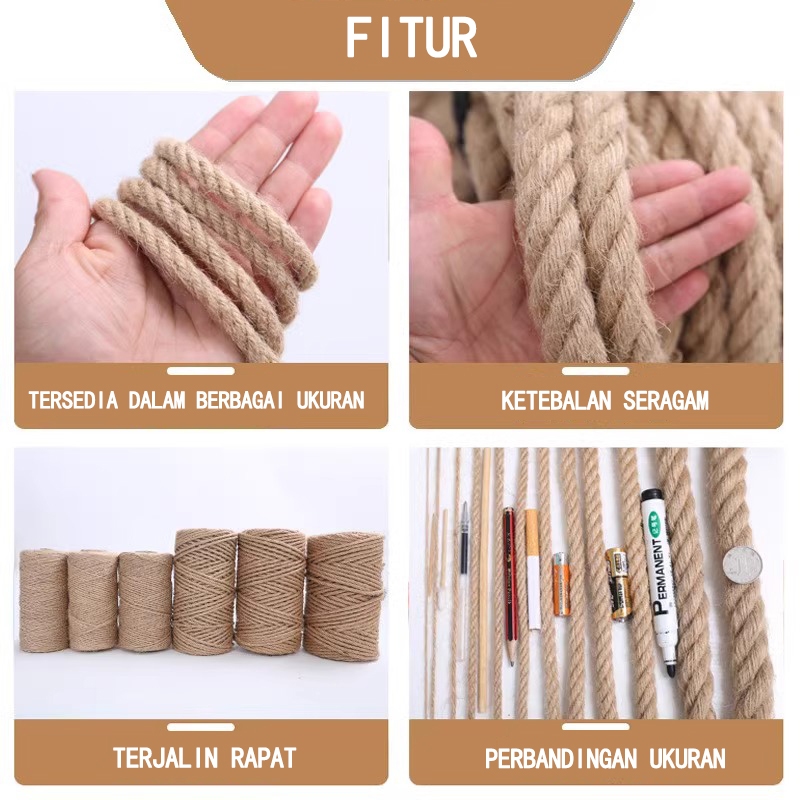TDT - Tali Tambang Goni 16 - 30MM Meteran / Tali Tarik Tambang Pengikat Barang Hiasan Dekorasi Tali Rami