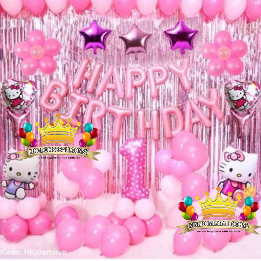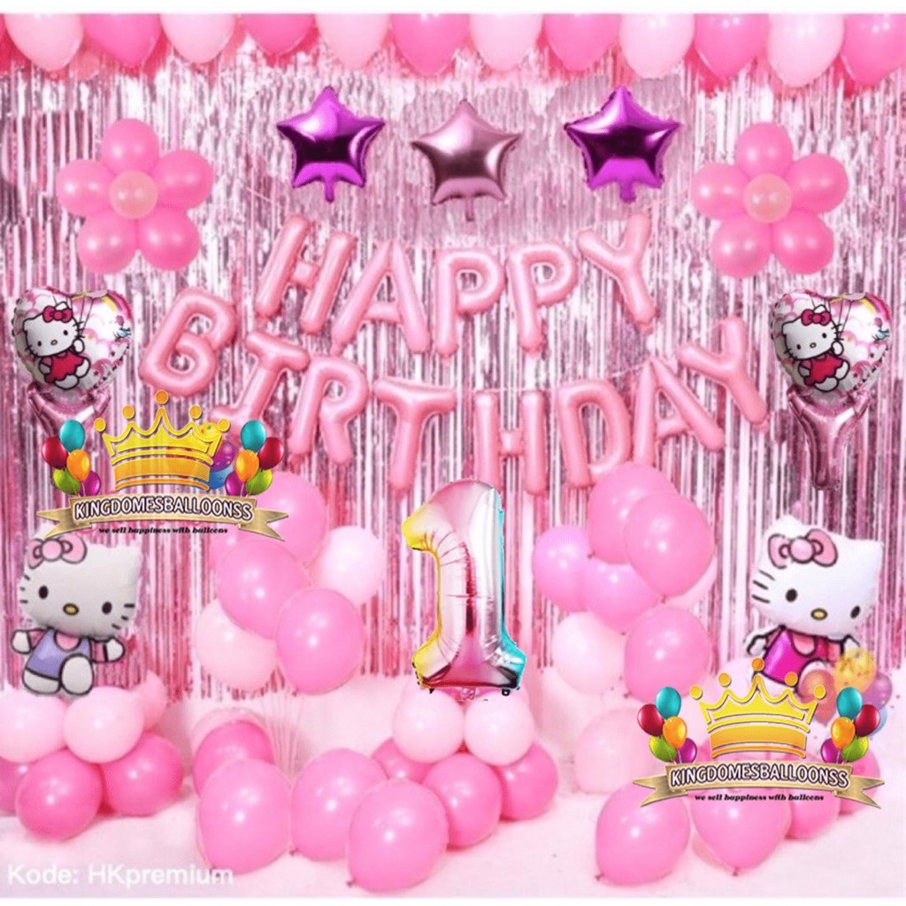 TERLARIS Set Paket Balon Set Karakter Hello Kitty Happy Birthday Ulang Tahun Anak