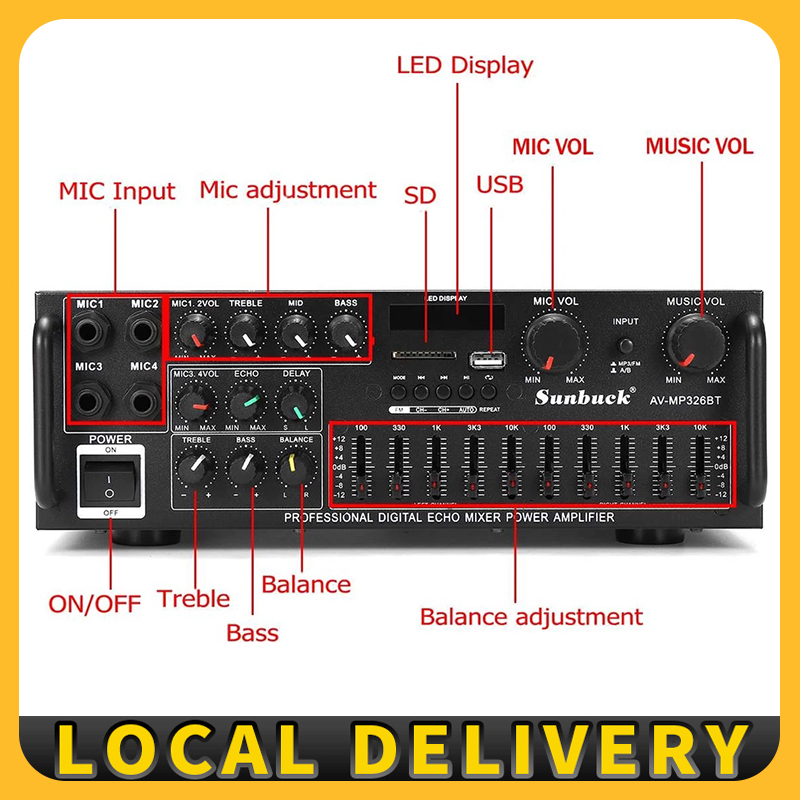 AMPLIFIER BLUETOOTH SUBWOOFER / AMPLI KARAOKE EQUALIZER PENGUAT DAYA AUDIO STEREO RUMAH BLUETOOTH STEREO AMPLIFIER TREBL