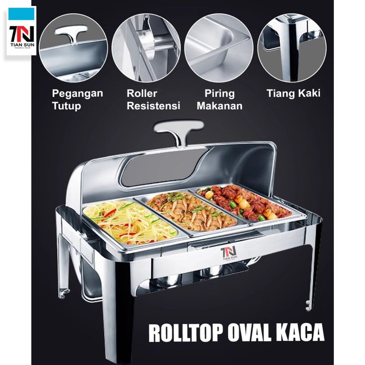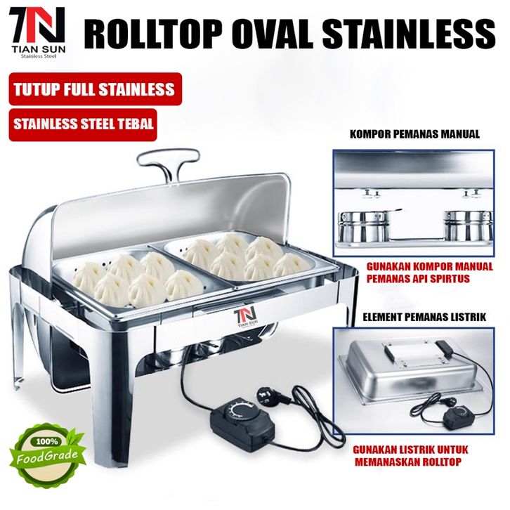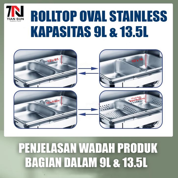 ORIGINAL 7N Tian Sun Rolltop Oval Stainless Steel Tebal / Kapasitas 9L & 13.5L / chafing dish prasmanan resto